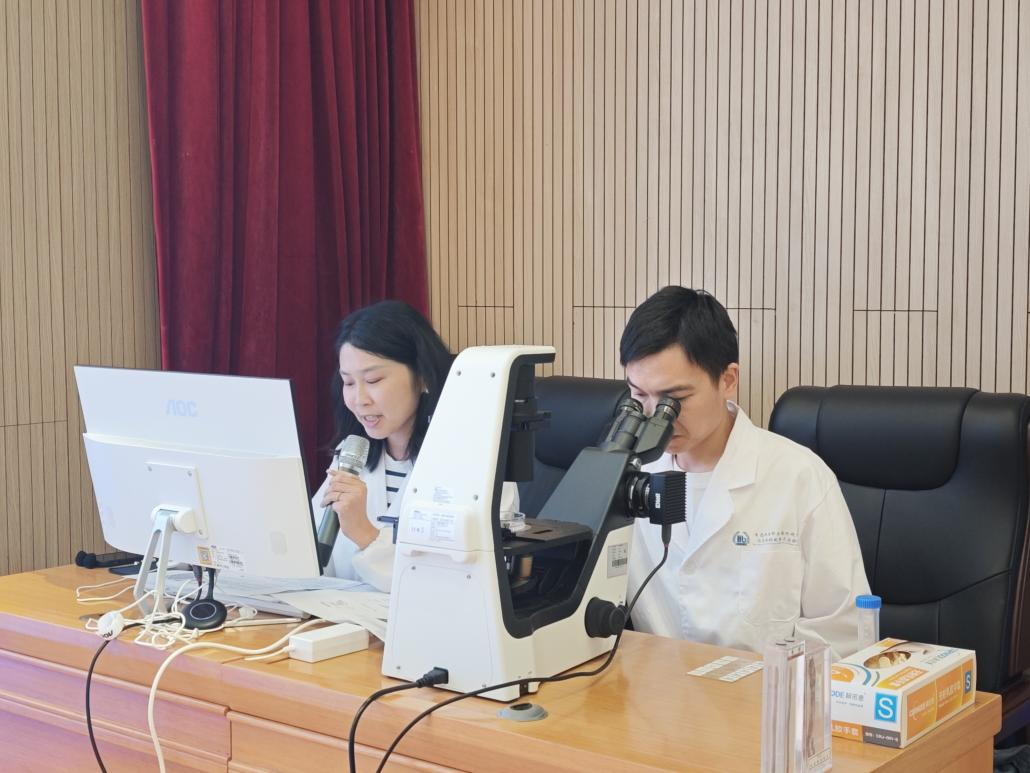 随后进行的“微观世界大发现”环节将活动推向高潮。在周紫燕博士的专业引导下,现场通过光学显微镜直播技术,将土壤样本中微小而活跃的世界清晰地呈现在大屏幕上。小朋友们直观地观察到植物根尖的 “营养输送网络”、真菌的 “隐形菌丝”、草履虫的纤毛与伸缩泡,以及蚯蚓切片中的体壁肌肉和消化管。高清镜头不仅生动展示了土壤微观世界的奇妙,更让大家深刻认识到这些 “微观居民” 对土壤健康与生态循环的重要作用。